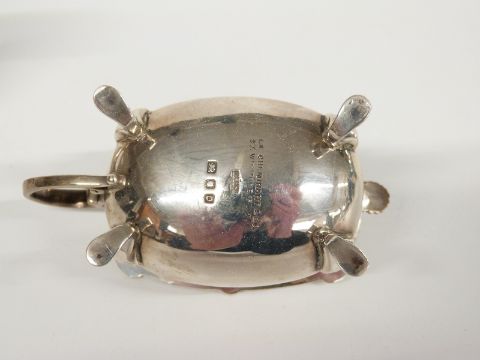 Hallmarked silver mustard with blue glass liner, matching pepper, open salt with blue glass liner and two spoons, weight of silver 127g