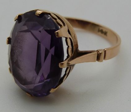 A 14ct gold ring set with a synthetic colour change sapphire, a hallmarked silver bangle and a bracelet