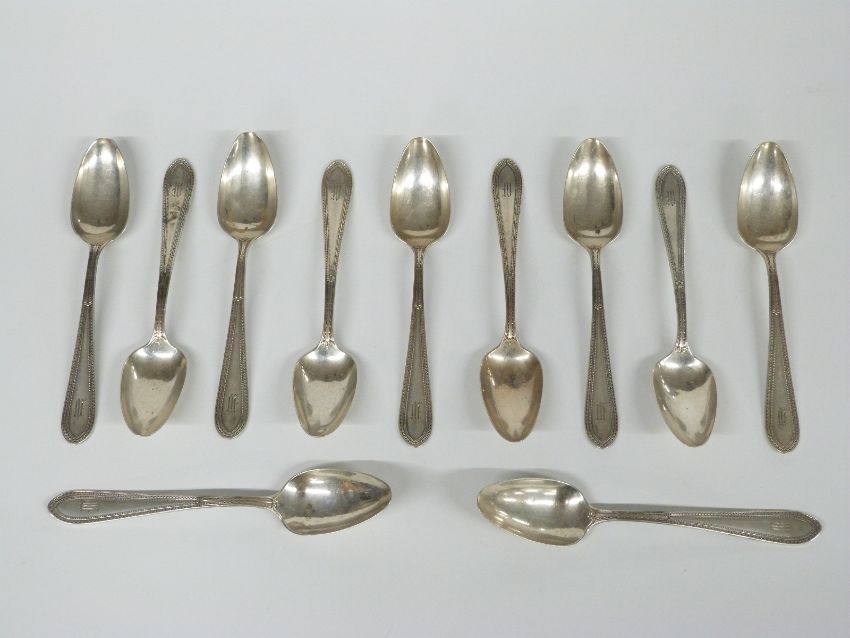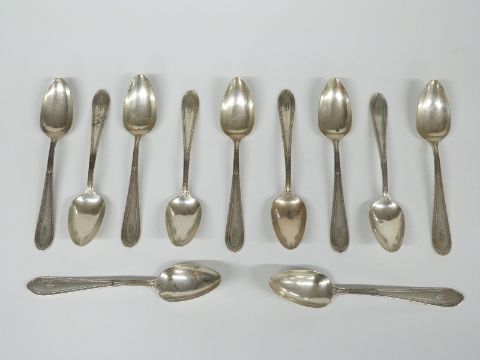 Set of eleven Gorham American white metal teaspoons with Gorham silver marks and marked sterling, length 14cm, weight 218g