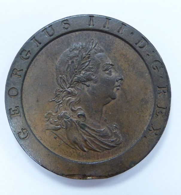 1797 George III cartwheel penny, EF++, 10 laurel leaves, some lustre