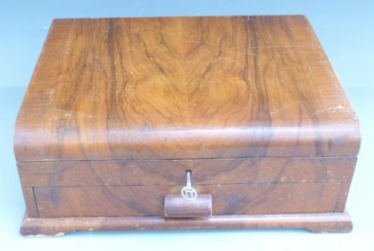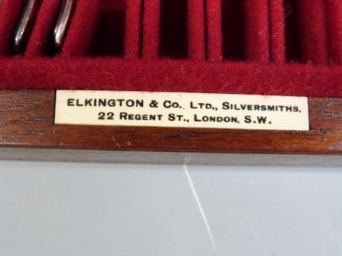 Art Deco burr walnut cutlery canteen and contents and an Elkington canteen and contents
