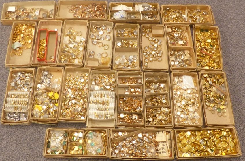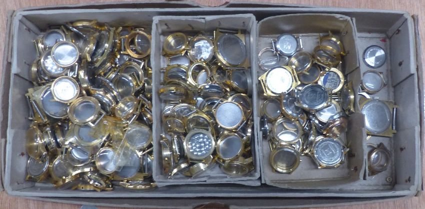 A very large quantity of gold plated and stainless steel wristwatch cases, all unused and most in original trade delivery boxes