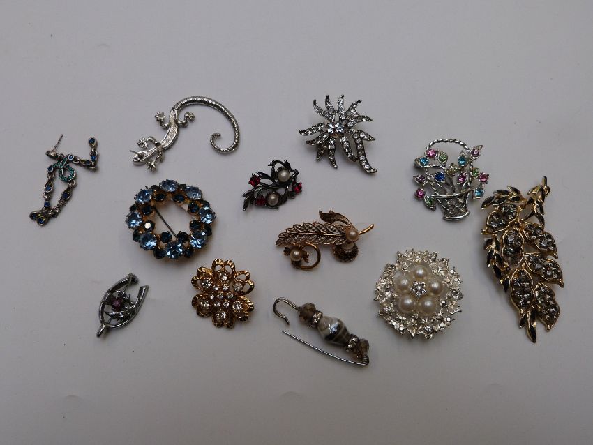 A collection of costume jewellery including brooches, beaded necklaces, silver and agate necklace etc