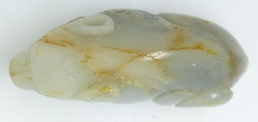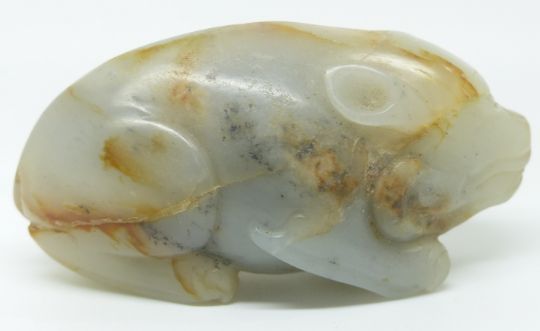 A 19thC carved jade figure of a recumbent pig, height 4cm x length 7.5cm