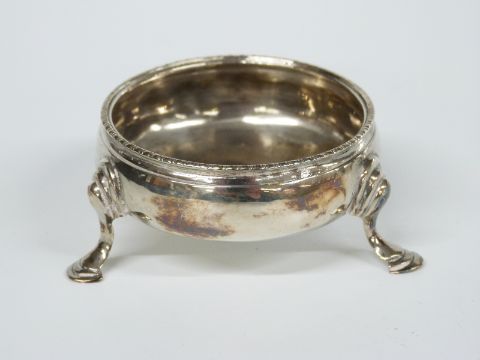 Georgian hallmarked silver hoof footed salt, London 1779, maker's mark rubbed, diameter 7.5cm, weight 36g