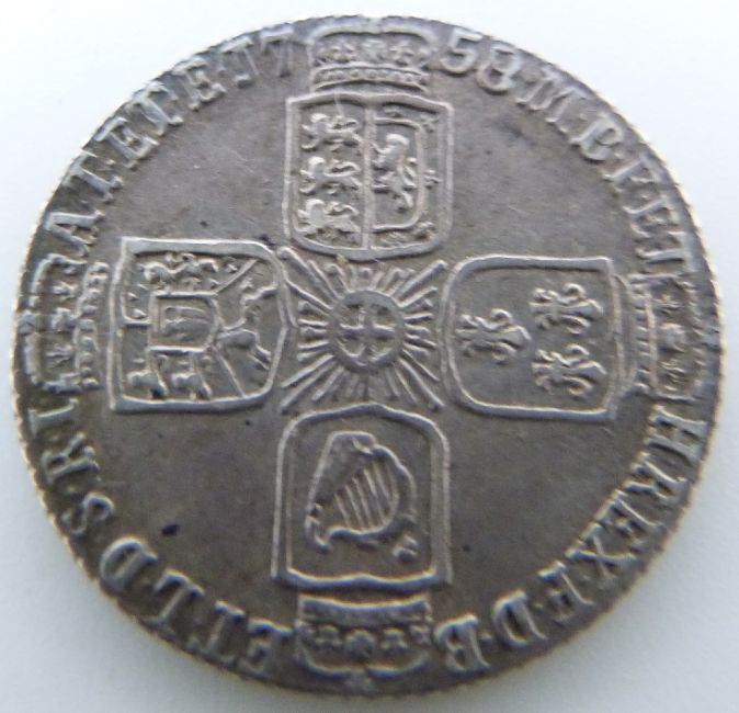 George II 1758 sixpence, old head, plain angles reverse, VF+ together with a similar example F-VF