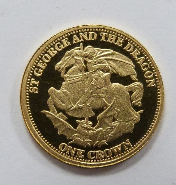 Gold Piedfort Tristan da Cunha St George and the Dragon one crown coin, 22ct gold, 2.48g, cased with certificate