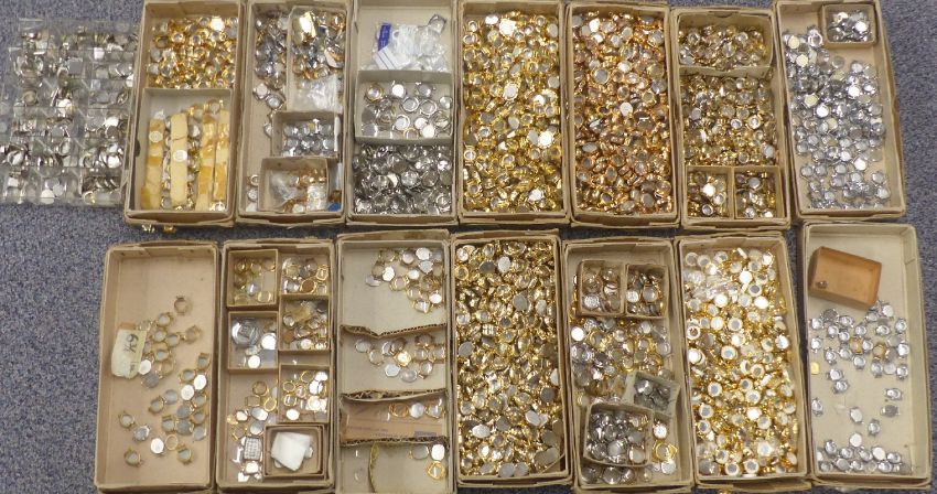 A very large quantity of gold plated and stainless steel wristwatch cases, all unused and most in original trade delivery boxes