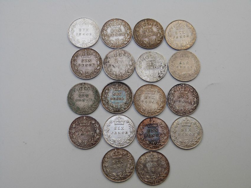 A collection of Edward VII sixpences, 1902 onwards, various grades, mostly VF-EF+ together with five various head Victorian examples, 18 in all