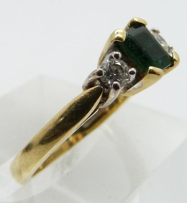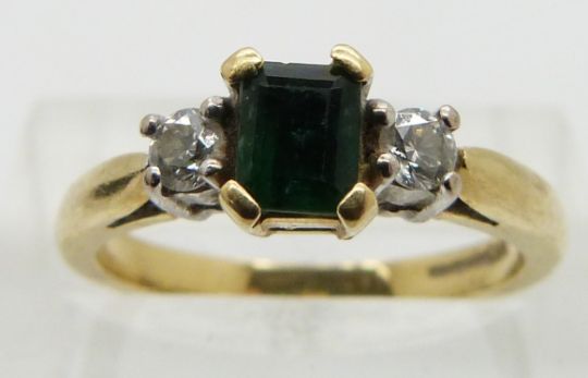 An 18ct gold ring set with an emerald and diamonds