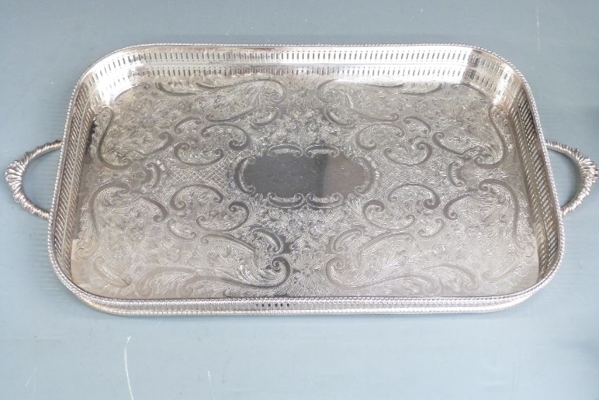 Silver plated tea and coffee set on tray, length 49cm