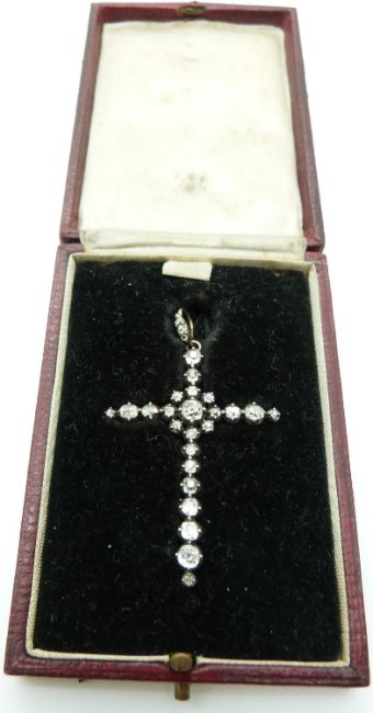 Georgian cross pendant set with old mine cut diamonds in a silver setting, the largest diamond approximately 0.2ct, in original fitted box