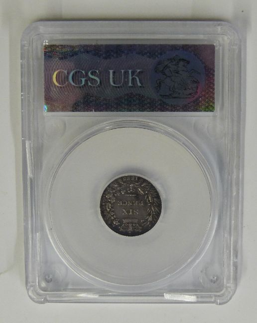 1858 CGS slabbed first young head Victorian sixpence, CGS F20, Davies 1057