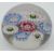 Clichy patterned millefiori glass paperweight with seven rings of red, blue and white canes surrounding pink, green and white roses, 71mm diameter.