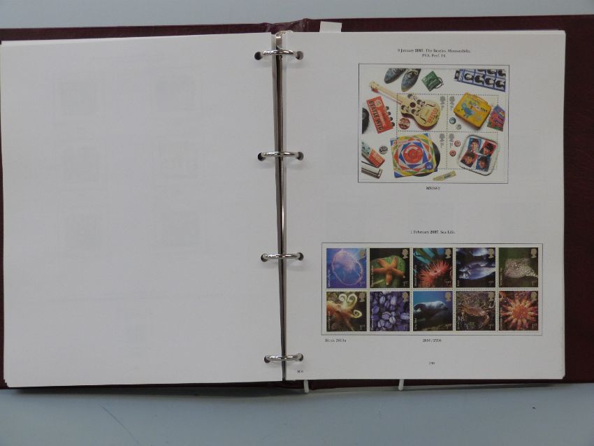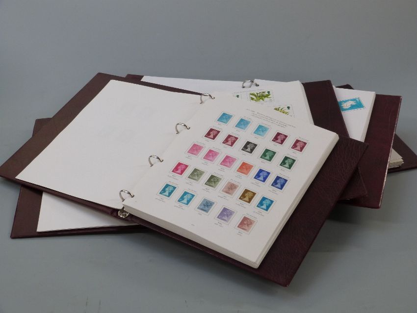 A set of four Stanley Gibbons Great Britain stamp albums 1840-2008 Vol 1 includes 1840 1d black and 2d blue, both four margins with red Maltese Cross cancellation, other 1d blacks, range of Victorian issues, seahorses, 1929 UPU £1 black used. Extensive range of mint QEII stamps including early Machins