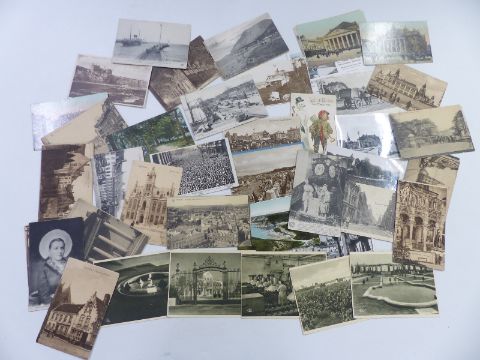 Approximately 50 postcards including Gloucester interest Lower Lode saloon steamer postcard, Thaxted, Continental cards etc