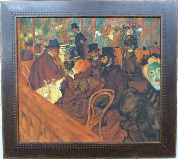 Malenda Trick after Toulouse Lautrec inside the Moulin Rouge, bar scene, signed lower left, 50 x 57cm