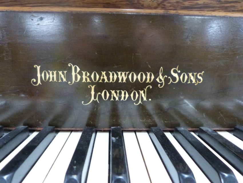 John Broadwood and Sons London late nineteenth century rosewood baby/ semi grand piano A to A, 6½ octaves, raised on turned and tapered octagonal legs, cast iron frame, serial no. 11233, width 55" x length 87"