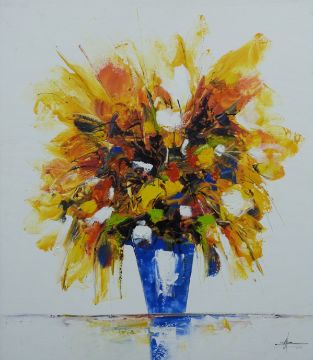 Modern acrylic on canvas still life of flowers in vase, indistinctly signed lower right, 89 x 78cm