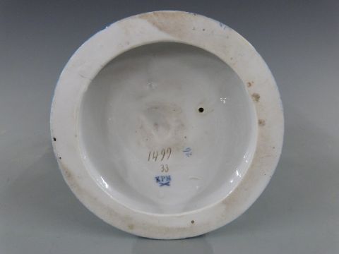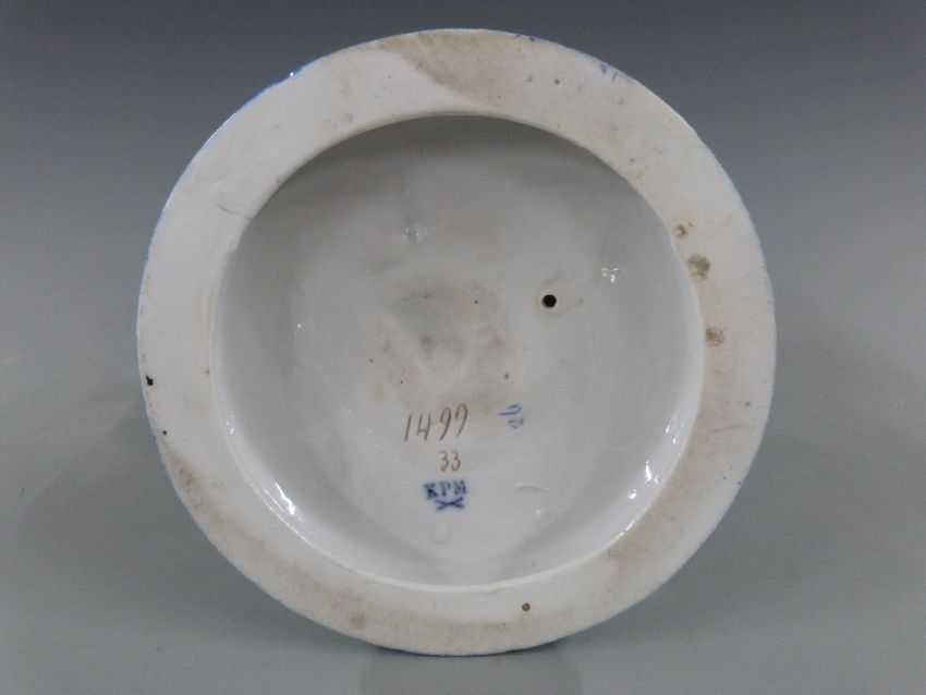 KPM figural sweetmeat dish in the form of a boy holding a lidded basket, 25cm tall