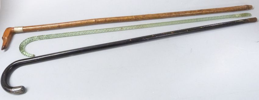 A glass cane and two others