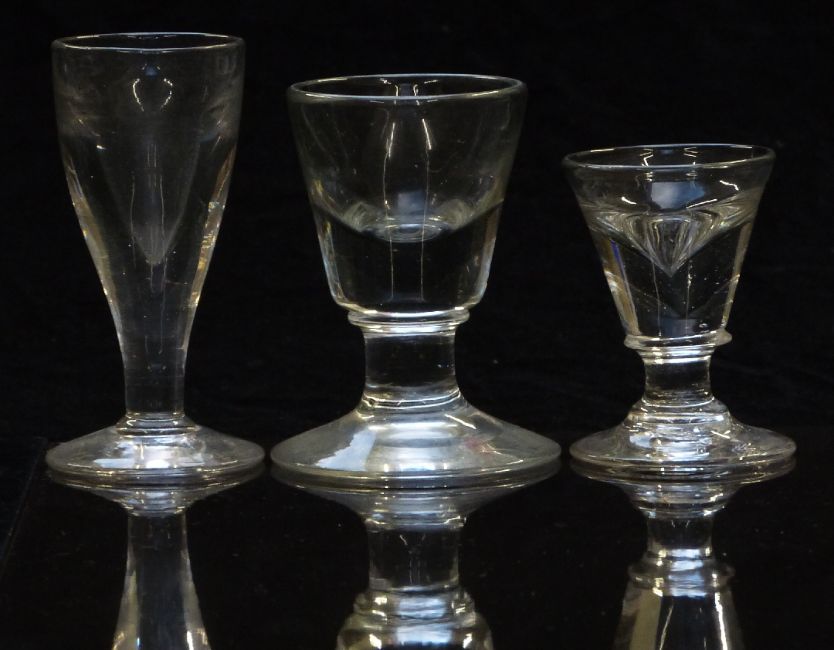 Seven 19thC clear glass drinking glasses, largest 10.5cm tall.
