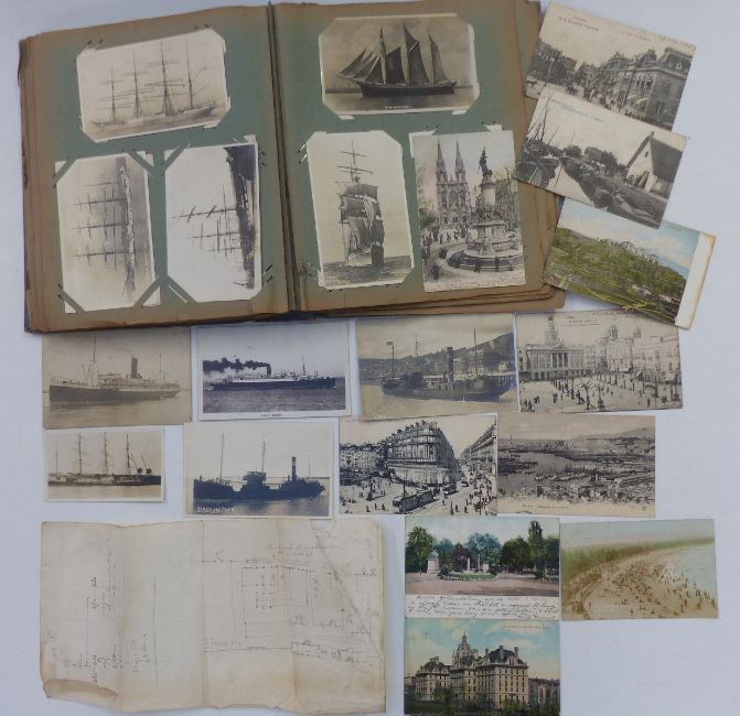 An Edwardian postcard album of mainly maritime subjects including sailing ships, liners, battleships, White Star Line etc., approximately 240 cards, entered for sale by direct descendants of Thomas Newland Rosser (1857-1935), dockmaster at Bute Docks (later the Cardiff Railway Company). He was apprenticed in 1872, gained his master's certificate in 1880, in 1885 he was appointed deputy dockmaster and in 1896 dockmaster. His father was also a pilot in Cardiff, having been so for around 40 years. Thomas Newland Rosser hosted Captain Scott and the Terra Nova before setting off on their Antarctic expedition. He was also present at two visits of the Royal Yacht Victoria and Albert III