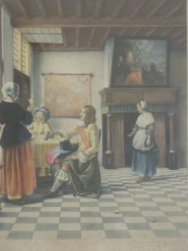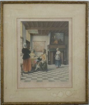 Antoine Gaymard, pair of signed mezzotints of 18thC interior scenes, each 38 x 30cm