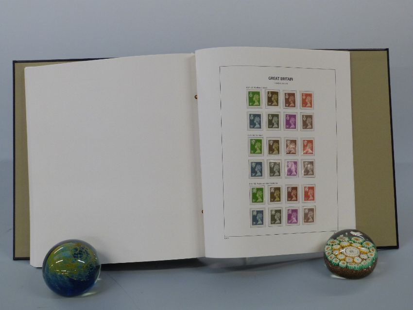 Stanley Gibbons Davo Great Britain albums vols 1, 2 and 3.Vol 1 1840 -1970 includes 1840 2d blue 4 margins red Maltese Cross cancellation, 1847-54 6d embossed, 1/2d rose red plate 20 mint, surface printed stamps, 1883 set mixed mint and used, 1883-4 high values to 10/-, Victoria jubilee and Edward VII sets mint, George VI mint complete, QEII mint nearly complete including early Castle high values, Victorian and Edward VII overprints etcVol 2 1970-1989 mint nearly completeVol 3 1990-2000 mint only 1 stamp missing