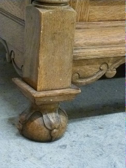 Art Nouveau oak sideboard with bevelled astragal glazed cabinet to top, the base fitted three drawers and two cupboards with central glazed area, W204 x D68 x H169cm
