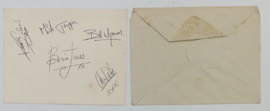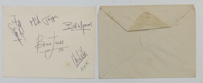 Mick Jagger signed Rolling Stones Decca Records promo-card with original mailing envelope, postmarked 17th July 1964.