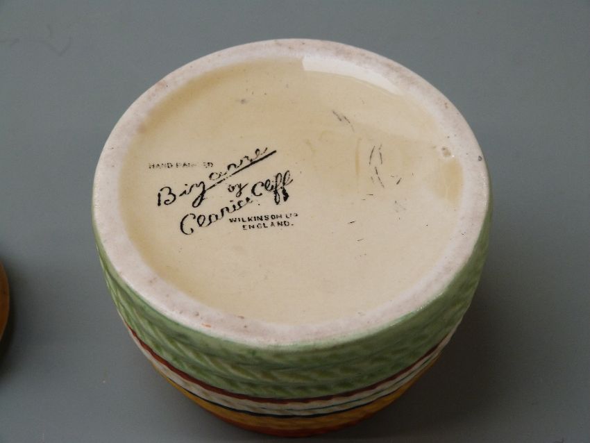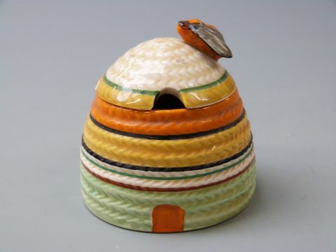 Clarice Cliff for Wilkinson Pottery Bizarre honeypot with bee finial, 7.5cm tall