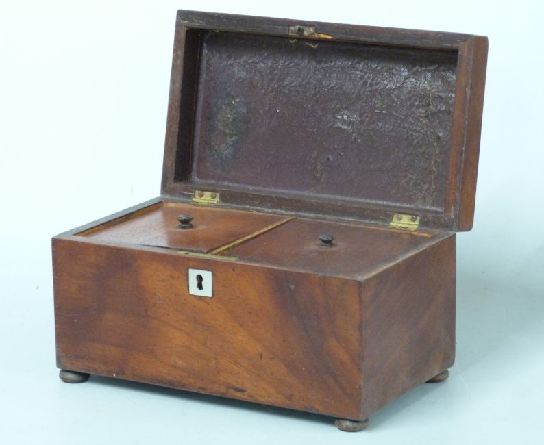 Leather covered jewellery box, two division tea caddy, vintage paint box, further inlaid box etc