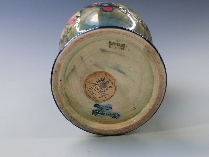 William Moorcroft baluster vase in Leaf and Berry pattern, with impressed and applied label 'potter to HM the Queen', 24 cm tall