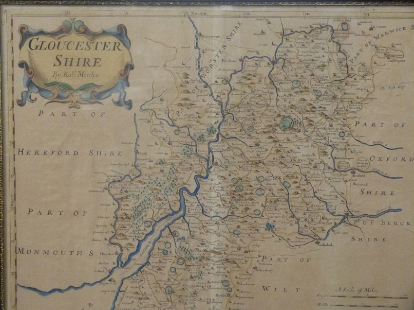 Robert Morden 18th century map of Gloucestershire, 36 x 43cm