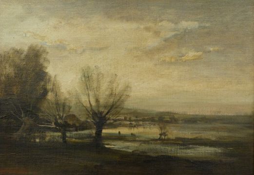 Philip Padwick (1876-1958) oil on board landscape with lake, signed lower left, 35 x 49cm