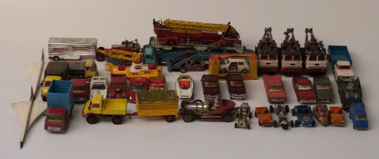 Thirty-nine Corgi Toys diecast model vehicles including Chipperfields Circus, Batmobile, The Beatles Yellow Submarine, Whizzwheels Mini-Cooper etc, one in original box