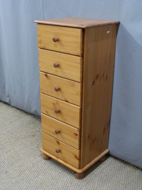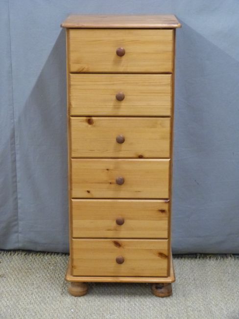 Tall pine chest of six drawers, W45 x D38 x H110cm