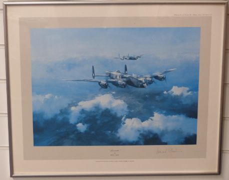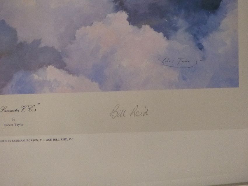Three Robert Taylor signed prints comprising Lancaster signed Leonard Cheshire, The Lancaster V.Cs signed by Norman Jackson & Bill Reid and The Dambusters signed by Mick Martin