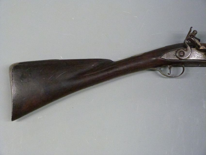 Daykin 18 bore flintlock hammer action sporting gun with named and engraved lock, iron butt plate, trigger guard and mounts, vacant cartouche to wrist, railed stock, horn tipped forend, steel ram-rod and engraved 32inch barrel stamped with proof marks and TF, overall length 120cm
