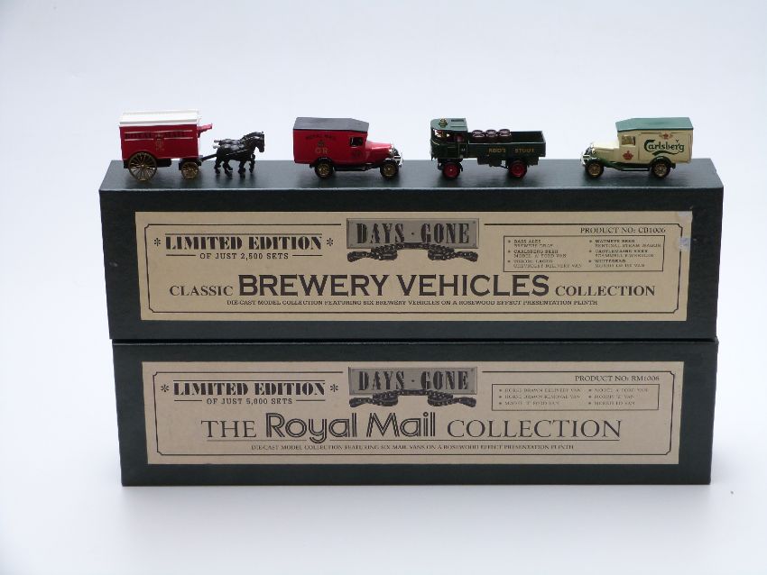 Two Lledo Days Gone 1:43 scale limited edition diecast model vehicle sets The Royal Mail Collection RM1006 and Classic Brewery Vehicles Collection CB1006, both in original boxes