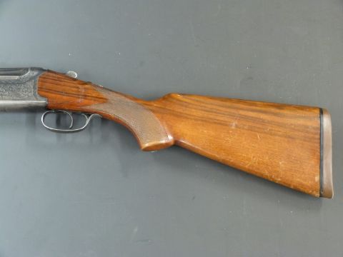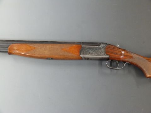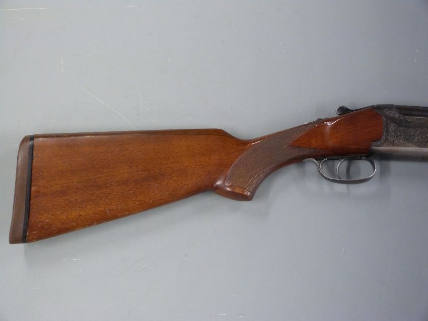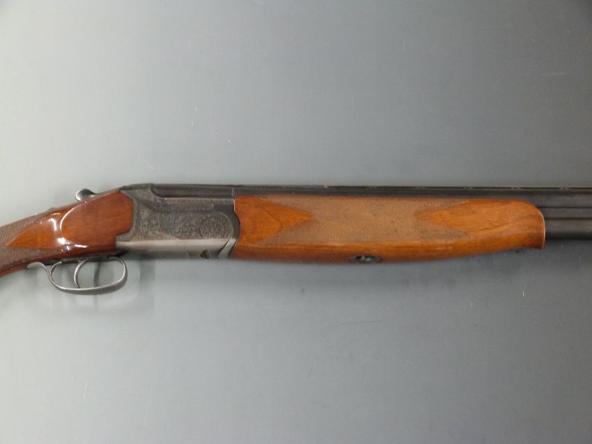 Lanber Amino Express 35 12 bore over and under shotgun with engraved locks, top plate and thumb lever, chequered semi-pistol grip and forend, single trigger, vented top rib and 27.5 inch barrels choked 3/4 and 1/2, overall length 113cm, length of pull 37cm, serial number LG112245. PLEASE NOTE THAT A VALID RELEVANT FIREARMS/SHOTGUN CERTIFICATE IS REQUIRED TO HANDLE/PURCHASE THIS ITEM.