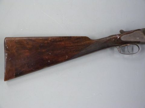 Army & Navy 12 bore side by side shotgun named and engraved locks, finely engraved underside, trigger guard, top plate and thumb lever, chequered grip and forend, vacant cartouche and carved teardrop to the of the stock, double trigger and named 30 inch Damascus barrels, overall length 119.5cm, length of pull 38cm, serial number 8271. PLEASE NOTE THIS GUN IS BEING SOLD AS STOCK AND ACTION ONLY AND A VALID RELEVANT FIREARMS/SHOTGUN CERTIFICATE IS REQUIRED TO HANDLE/PURCHASE THIS ITEM.