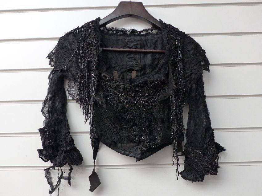 Two Victorian beaded bodices and two black dresses