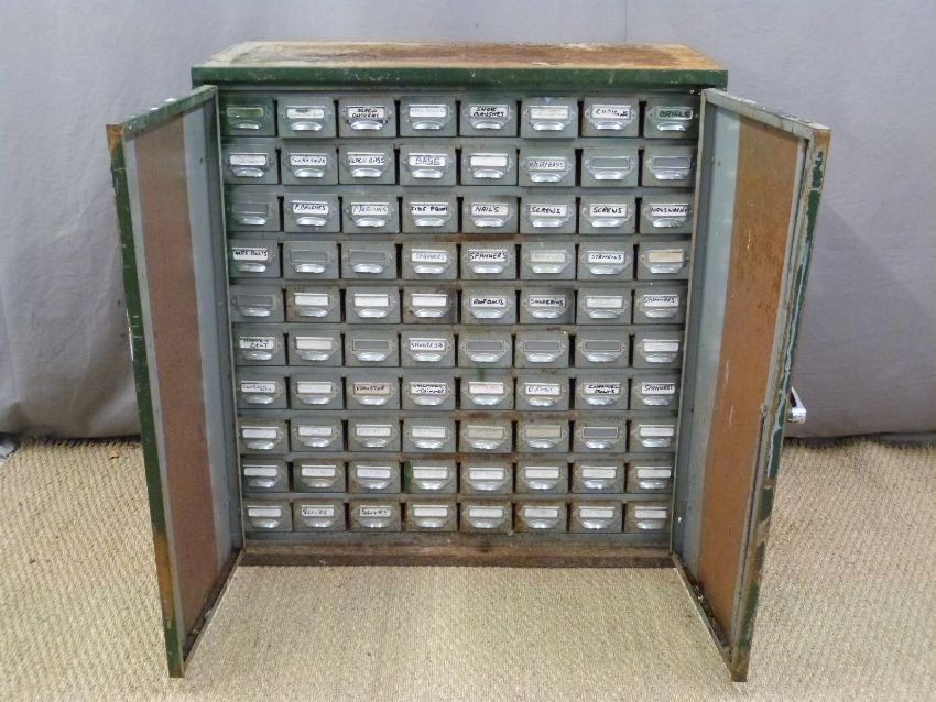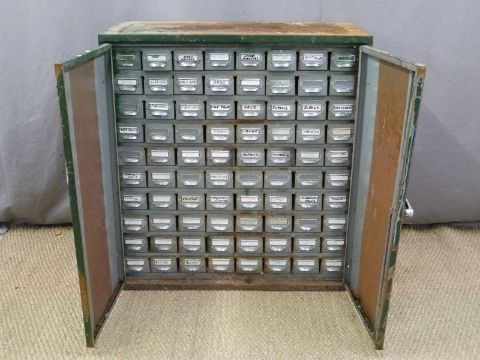 Metal collectors' or workshop cabinet with 80 small drawers