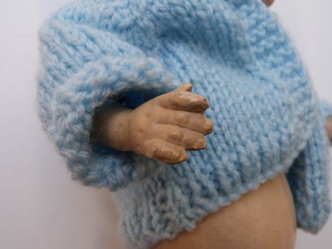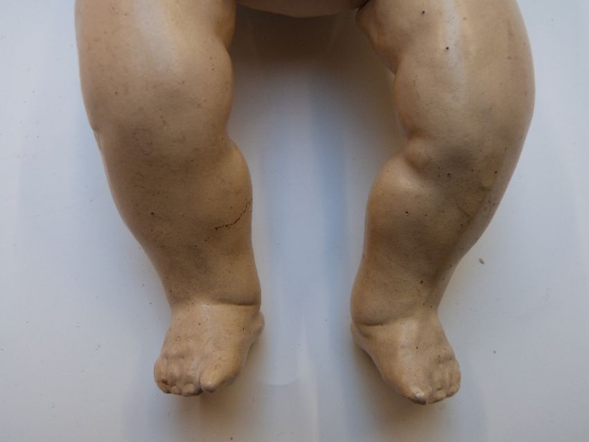 Armand Marseille Japanese bisque headed doll with closed mouth, weighted brown eyes, painted hair and jointed composite body, marked to the back of the neck A star with indistinct markings M Germany, 27cm tall