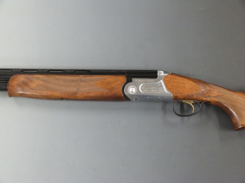Webley & Scott 912K 12 bore over and under shotgun with engraved scenes of birds to the named lock and underside, gilt single trigger, chequered grip and forend, vented top and central ribs, adjustable chokes and 30 inch barrels, overall length 120cm, length of pull 37cm, serial number TH3KA7446, in original box with outer sleeve, spare chokes, choke key, users manual etc. PLEASE NOTE THAT A VALID RELEVANT FIREARMS/SHOTGUN CERTIFICATE IS REQUIRED TO HANDLE/PURCHASE THIS ITEM.