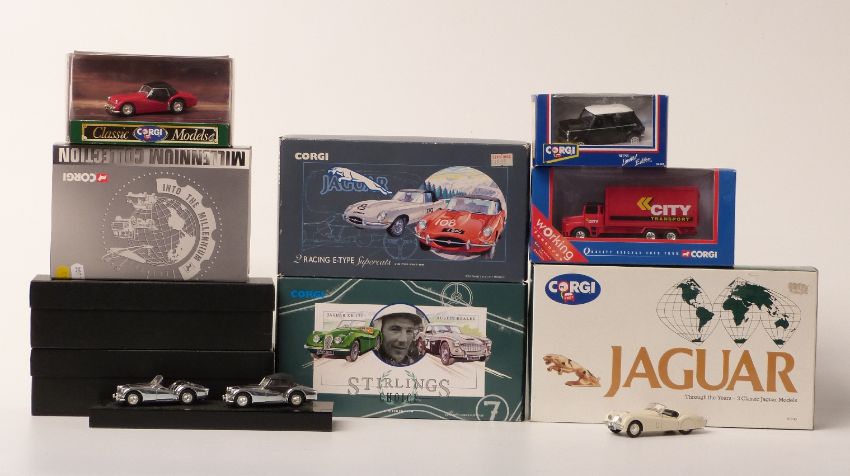 Ten Corgi diecast model vehicles and vehicles sets including Connoiseur Collection, Millennium Collection 43710, Jaguar, Stirlings Choice etc, all in original boxes