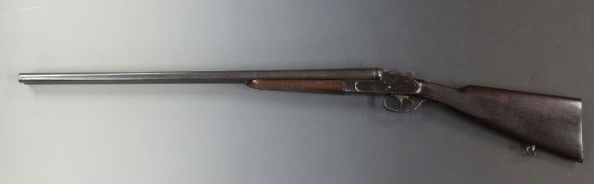 Czechoslovakian 12 bore side by side shotgun with sidelock, chequered grip and forend, double trigger and 28.25 inch barrels, serial number 7717-7. PLEASE NOTE THAT A VALID RELEVANT FIREARMS/SHOTGUN CERTIFICATE IS REQUIRED TO HANDLE/PURCHASE THIS ITEM.