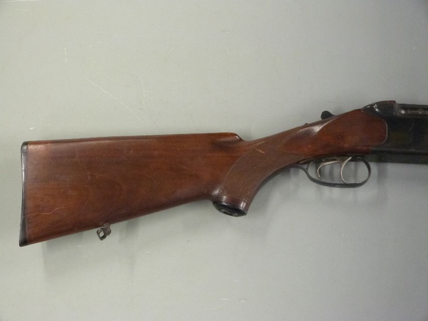 FEG of Hungary 12 bore over and under ejector shotgun with chequered semi-pistol grip and forend, double trigger, sling suspension mounts and 28 inch barrels choked ¾ and full, overall length 114cm, length of pull 37cm, serial number C7796. PLEASE NOTE THAT A VALID RELEVANT FIREARMS/SHOTGUN CERTIFICATE IS REQUIRED TO HANDLE/PURCHASE THIS ITEM.